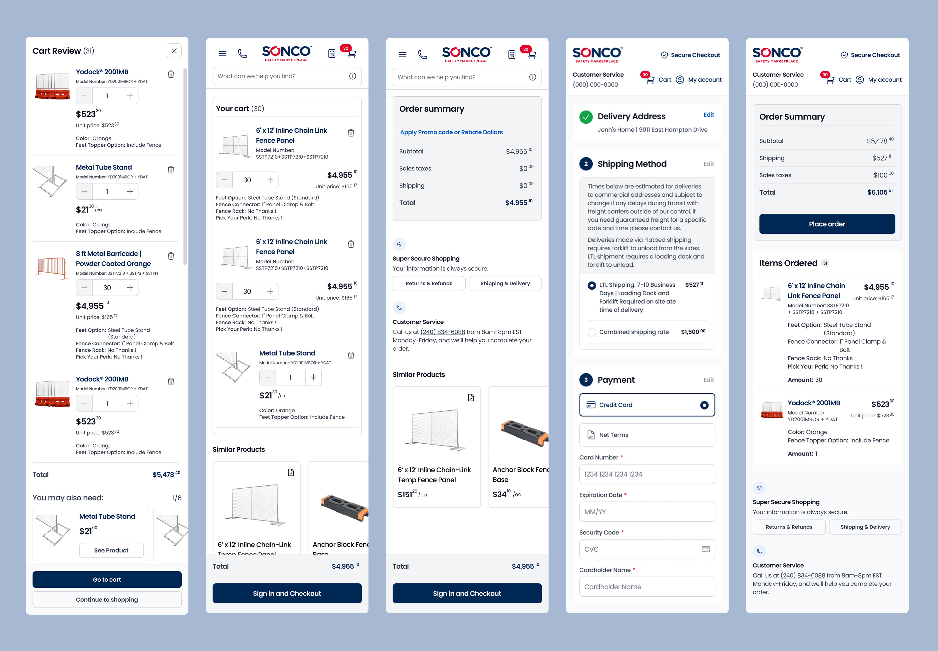 SONCO’s B2B buyers were abandoning checkout at 93% because they couldn’t quickly confirm the true total cost—especially shipping, which often exceeded product value. Shipping was hidden behind a login wall, and critical purchase information was spread across a 4-step flow. The challenge was to increase session-to-checkout conversion and reduce time to complete purchase, without increasing traffic spend.